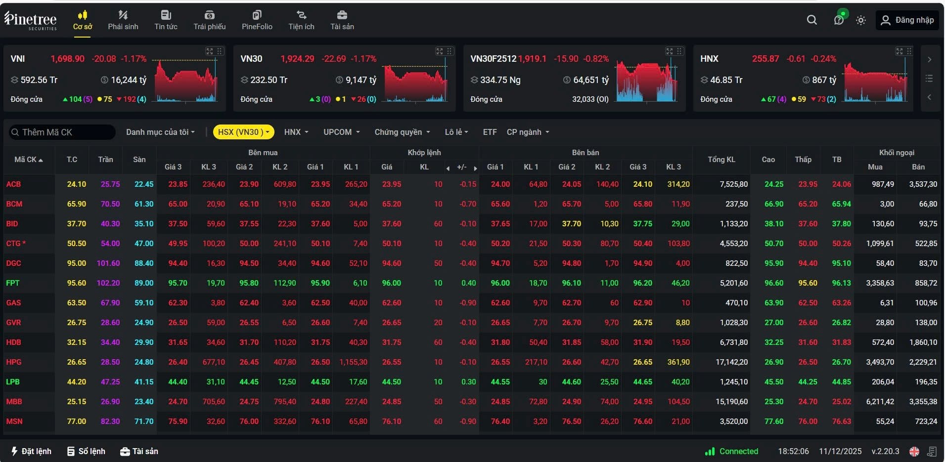 VN-Index đã trải qua chuỗi 3 phiên giảm liên tiếp với tổng mức điều chỉnh gần 55 điểm, kéo chỉ số rơi xuống dưới ngưỡng 1.700 điểm (kết phiên ngày 11/12). Đà giảm này khiến tâm lý nhà đầu tư trở nên thận trọng, nhất là khi nhịp tăng trước đó chủ yếu dựa vào nhóm cổ phiếu “họ Vingroup”, trong khi phần lớn các mã khác gần như không được “hưởng sóng”.