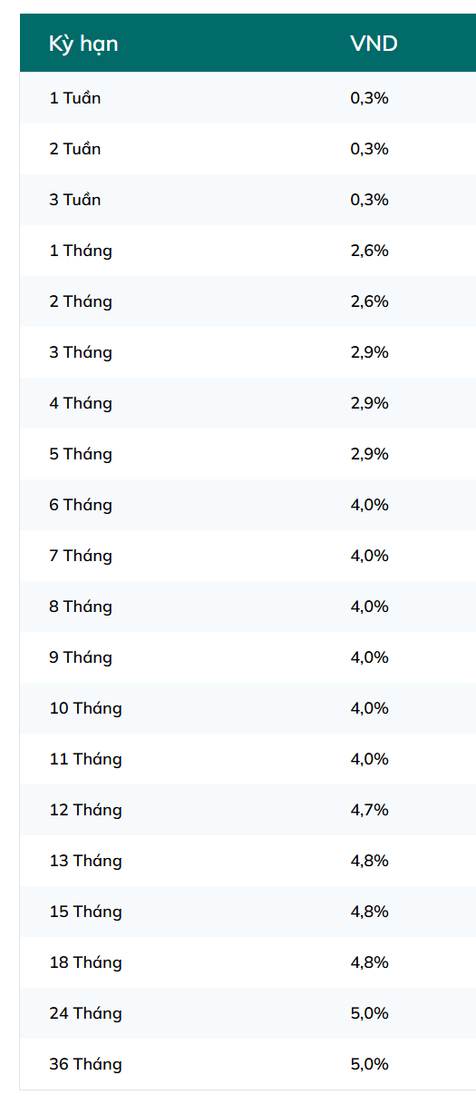 Ngân hàng này vừa điều chỉnh tăng đáng kể lãi suất tiền gửi ở nhóm kỳ hạn ngắn từ 1–11 tháng, đồng thời tiếp tục nâng mặt bằng lãi suất đối với các khoản tiết kiệm có kỳ hạn trên 12 tháng.
