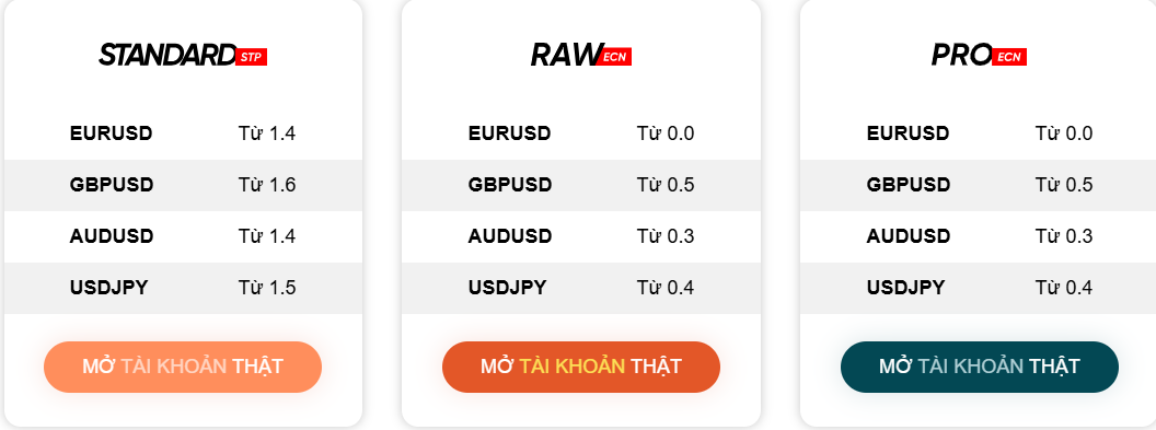 - Loại tài khoản Raw có yêu cầu tiền gửi tối thiểu cao là 500 đô la