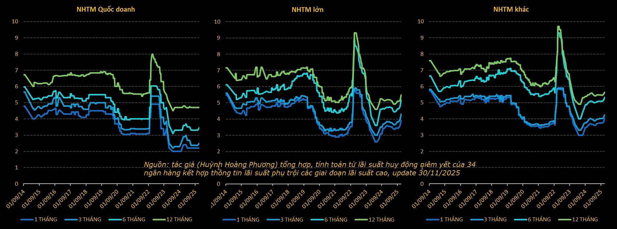 Điều này khiến khoảng cách lãi suất (GAP) giữa nhóm ngân hàng tư nhân và Big4 quốc doanh (Vietcombank, VietinBank, BIDV, Agribank) ngày càng nới rộng. Thực tế trong quá khứ cho thấy, mỗi khi GAP vượt quá ngưỡng nhất định, nhóm Big4 thường buộc phải tăng lãi suất để giữ chân dòng tiền gửi. Với tỷ lệ LDR vẫn cao, khả năng mặt bằng lãi suất tiếp tục nhích lên là hoàn toàn có thể, và Big4 nhiều khả năng sẽ sớm tham gia điều chỉnh.