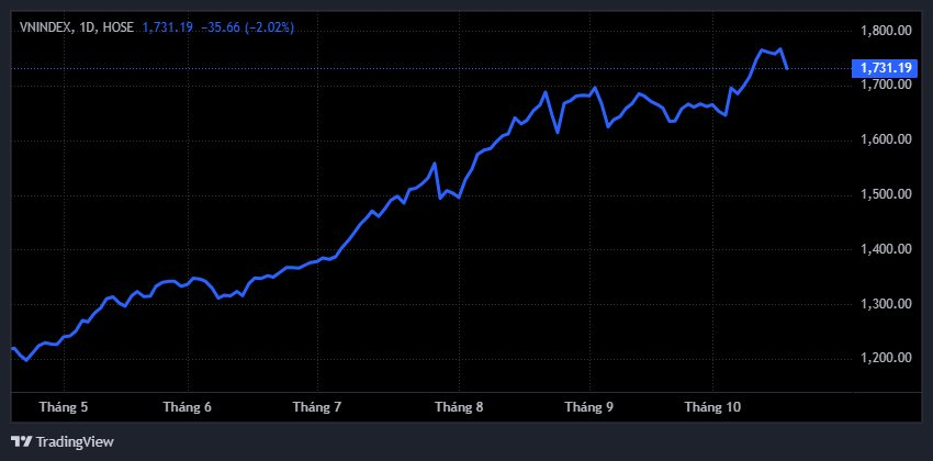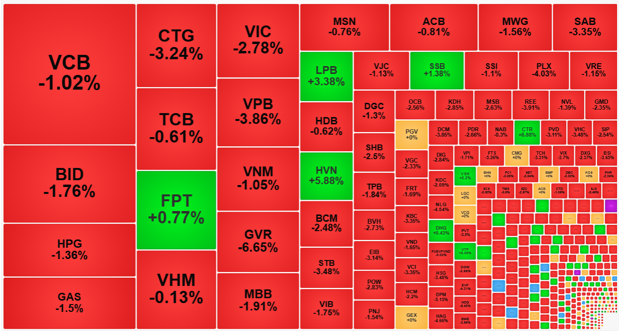 VN-Index lao dốc gần 44 điểm, chìm trong sắc đỏ suốt phiên giao dịch ngày...